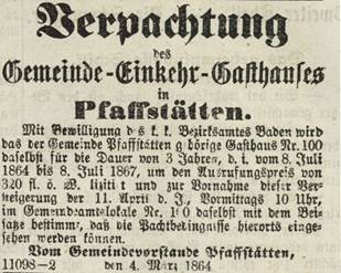 Die Pacht des Gasthauses wurde offenbar jeweils auf 3 Jahre vergeben.