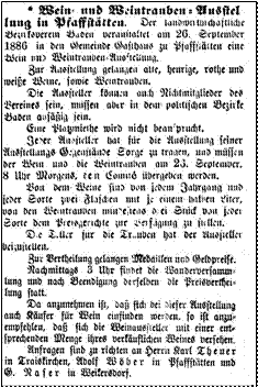 Am 26. September 1886 wird die erste Weinmesse in Pfaffstätten veranstaltet!