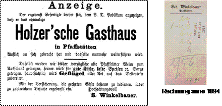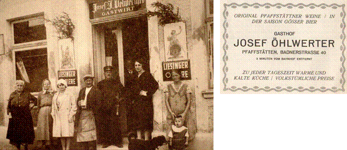 1862 lassen sich die Brüder Josef und Thomas Holzer aus Wiesmath in der Buckligen Welt in Pfaffstätten nieder. Josef Holzer heiratet die Aloisia Bauer, Tochter des späteren Bürgermeisters Josef Bauer (Bgm. 18791882) und errichtet auf der Parzelle Kons. Nr. 46 (heute geteilt in Badenerstr. 46 und Schulgasse 19) ein Gasthaus, er wird der Holzerwirt.