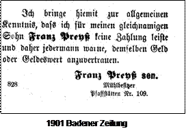 zunächst ist der Fleischer mit der neuen Fleischbank, welche vom Eingang in der heutigen Badenerstraße in die Dr. Josef DolpStraße neben dem Eingang zum Rathaus verlegt wurde, nicht zufrieden und dann gerät er durch den Verkauf von warmen Speisen "über die Gasse" mit dem Wirtshauspächter in Konkurrenz. Der Fleischhacker verliert den Prozess, auch die Errichtung eines eigenen Geschäfts wird ihm untersagt. Jahre später wird er dann selbst Gasthauspächter.