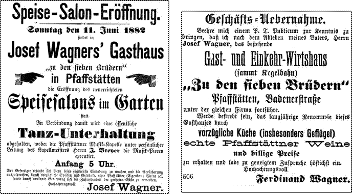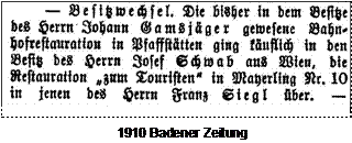 1885 betrieb der Gastwirt Franz Zwierina aus Baden, wo er auch den Gasthof Zur Kronprinzessin Stephanie in der Marchetstraße führte, das Lokal in der Einöde. Tobias Huber übernahm ein Gasthaus in Siegenfeld.