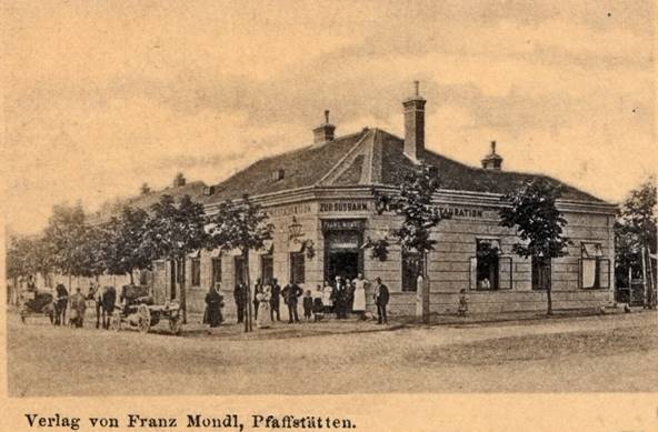 Im Jahr 1910 stirbt an dieser Adresse ein Friedrich Fenderl, "lediger Gastwirt aus Traiskirchen", im Alter von 30 Jahren. Zu diesem Zeitpunkt befand sich hier also schon ein Gasthaus.