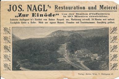 Ab 1913 führte Victor Phillip das Gasthaus in der Einöde. Es gab bereits Telefon: Interurban 12 man war also von Wien aus erreichbar.
