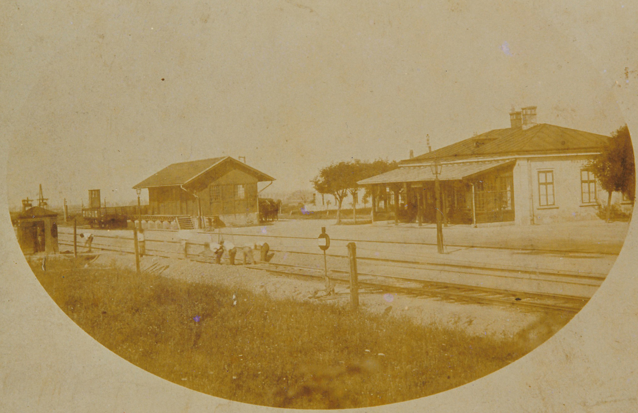 Diese Fotografie, geschätztes Aufnahmedatum 1880, zeigt Arbeiten am Bahnhof Pfaffstätten.Das Hauptgebäude sieht man ortsseitig am Ende den Bahngasse.